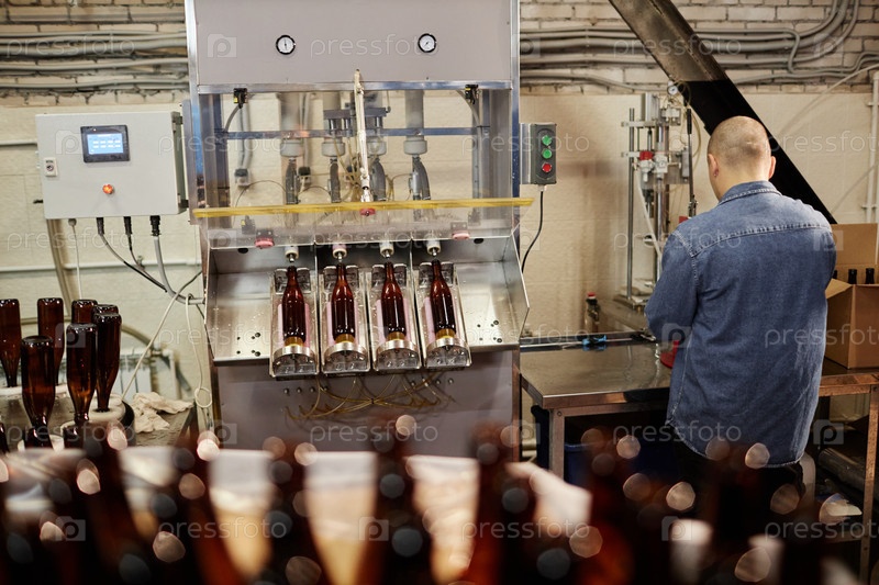 Производственный работник, работающий с аппаратами для распределения сидра и бутылочных напитков на заводе