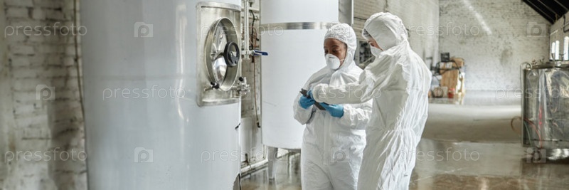 Header Image of Female Process Technicians in Uniform Monitoring Production Process Indoors (Изображение заголовка женских технологий в униформе для мониторинга производственного процесса внутри помещений)