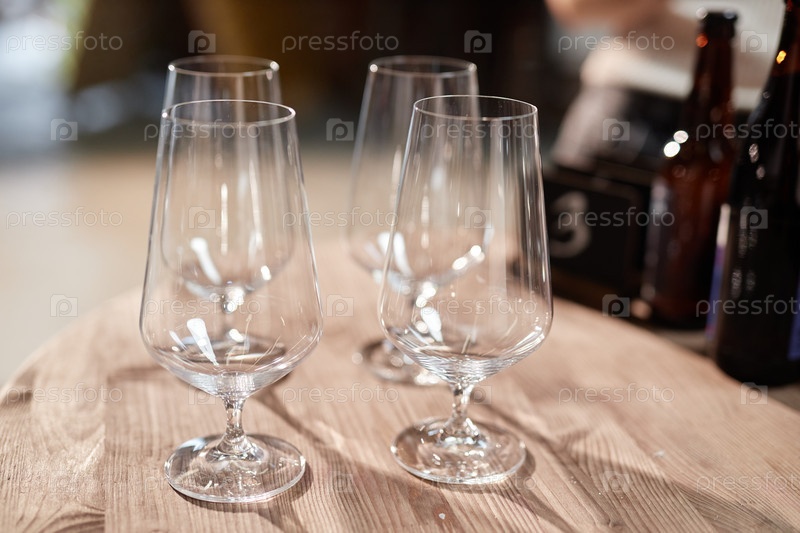 Набор пустых бокалов сидра, помещенных на стол во время дегустации в пабе