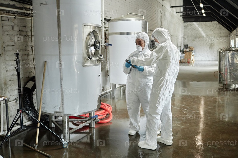 Две женщины-технологи процесса в униформе отслеживают производственный процесс на мастерской внутри