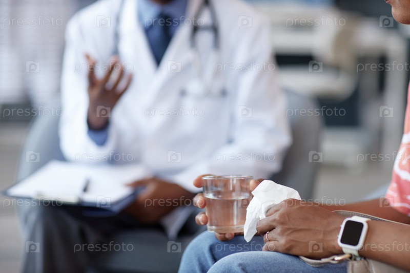 Ближайшее изображение чернокожей женщины, держащей стакан воды после получения плохих новостей
