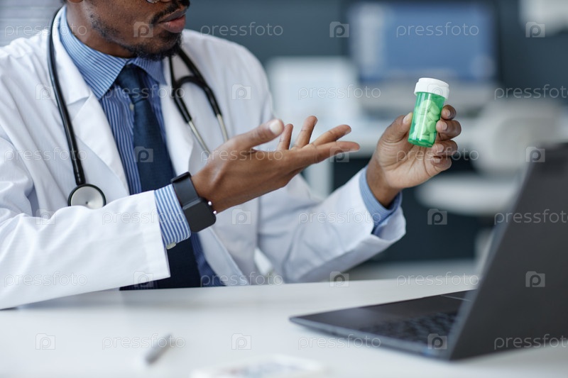 Врач показывает таблетки пациенту онлайн