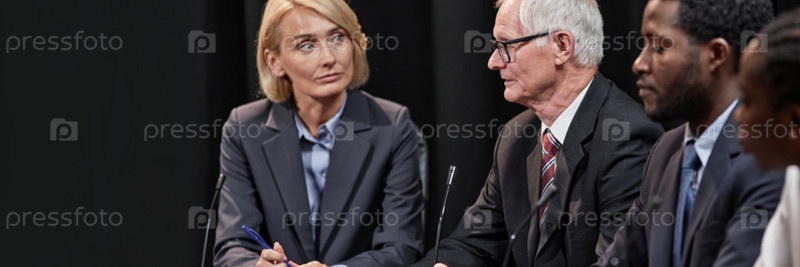 Header Image of Старший политик, выступающий на конференции с коллегами в местном совете