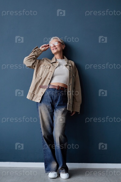 Старшая женщина, носящая современный джинс