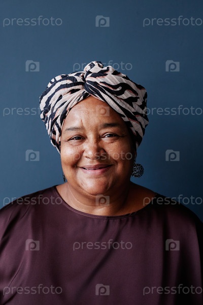 Открытый портрет чернокожей старшей женщины, улыбающейся