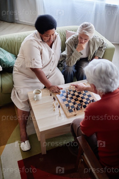 Люди, играющие в шахматы со своими старшими друзьями