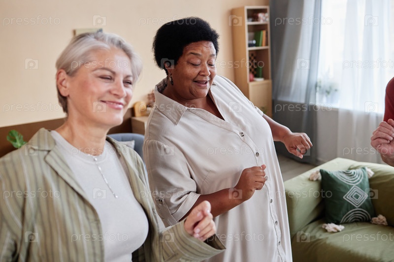Старшая чернокожая женщина танцует с другом для пенсионеров