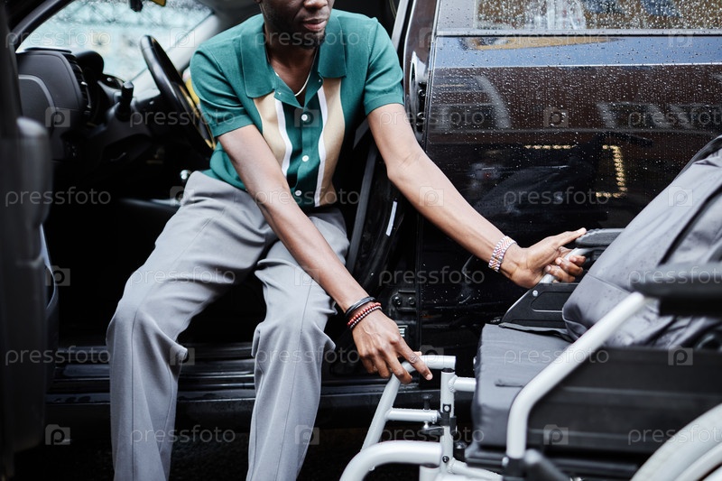 Человек с ограниченными возможностями, использующий складной инвалидный кресло