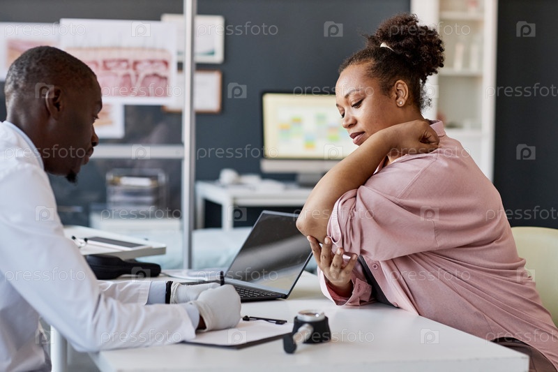 Черная женщина объясняет симптомы дерматологу