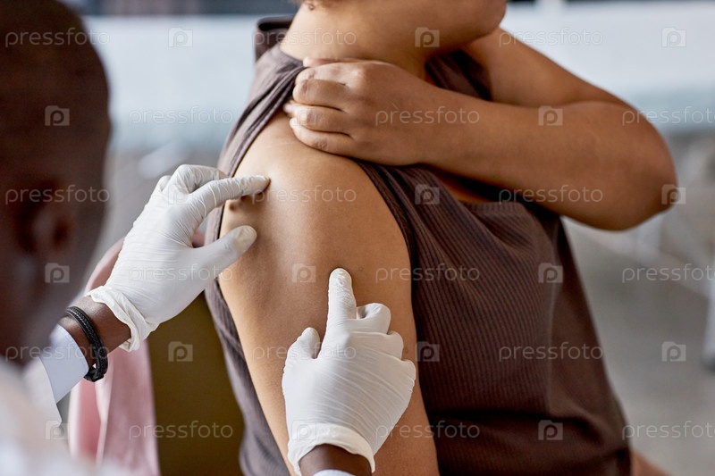Ключевое изображение чернокожего врача, осматривающего женщину-пациента в клинике