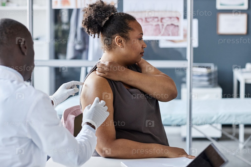 Улыбающаяся чернокожая женщина консультируется с доктором