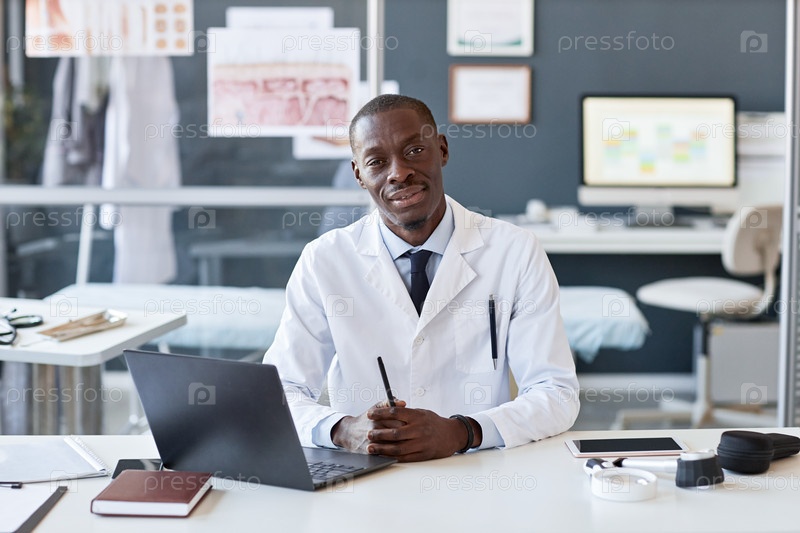 Дружественный чернокожий доктор на рабочем месте