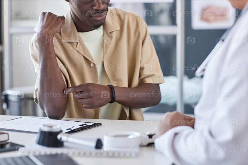 Чёрный мужчина, указывающий на кожную сыпь