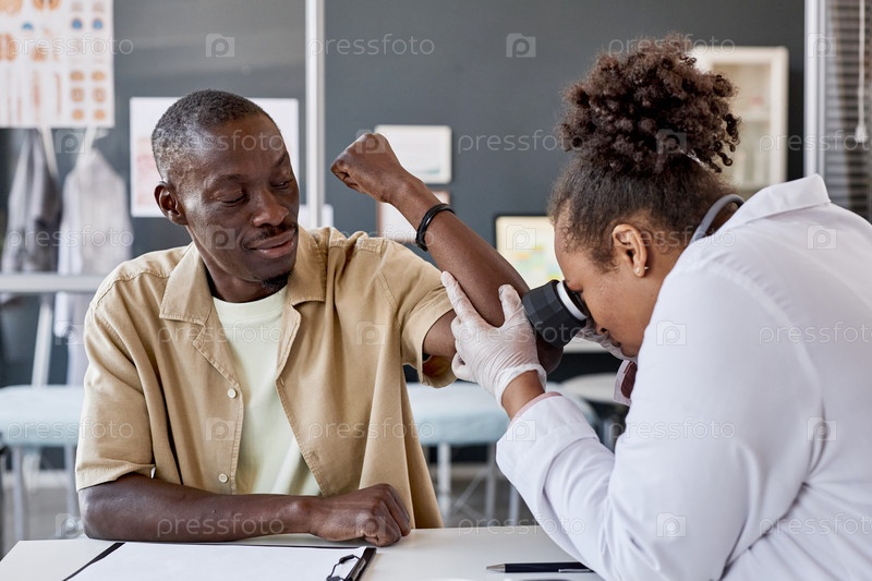 Улыбающийся чернокожий мужчина посещает врача