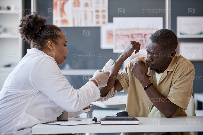 Чернокожая женщина осматривает пациента в клинике