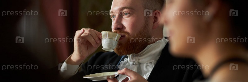 Джентльмен, держащий фарфоровую чайную чашку заголовок