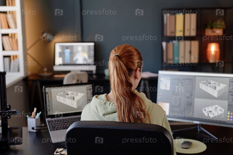 Работа над проектом дизайна в современном офисном рабочем пространстве