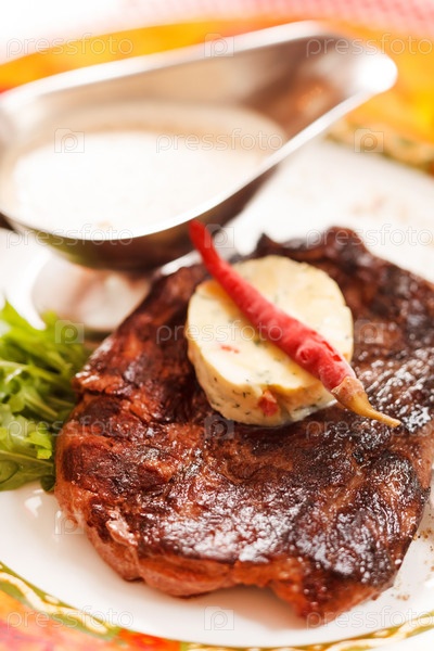 Стейк из говядины с соусом