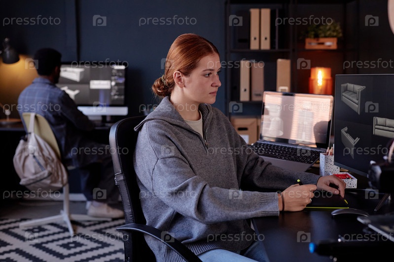 Портрет женщины, работающей на компьютере в офисной обстановке