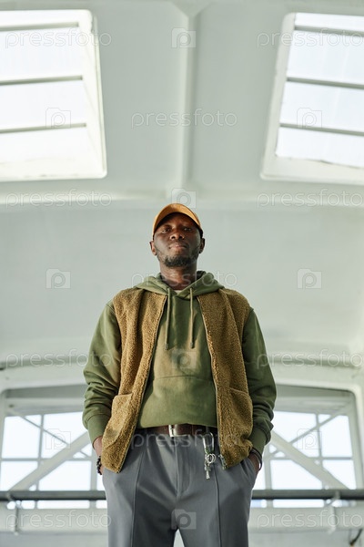 Портрет чернокожего мужчины с ключами от арендованного самохранилища, стоящего на складе