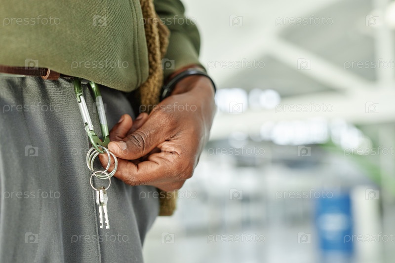 Рука черного человека, держащего ключи от арендованной единицы самохранилища на складе
