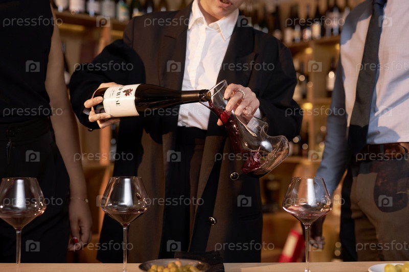 Непризнанный сомелиер наливает вино в кувшин