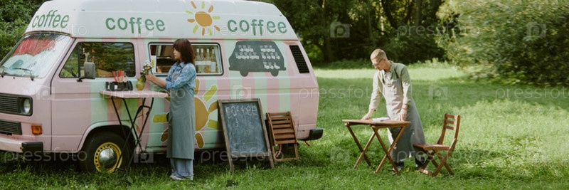 Заголовок с Рабочие пищевого грузовика