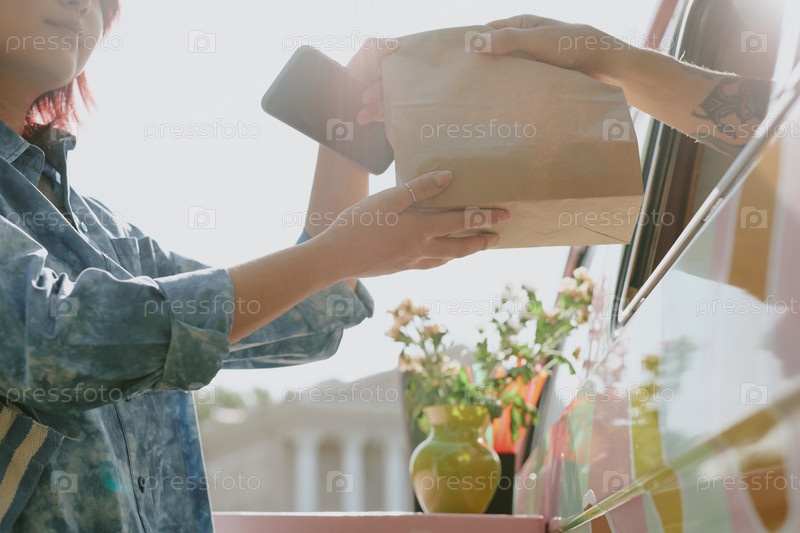 Женщина, держащая бумажный пакет