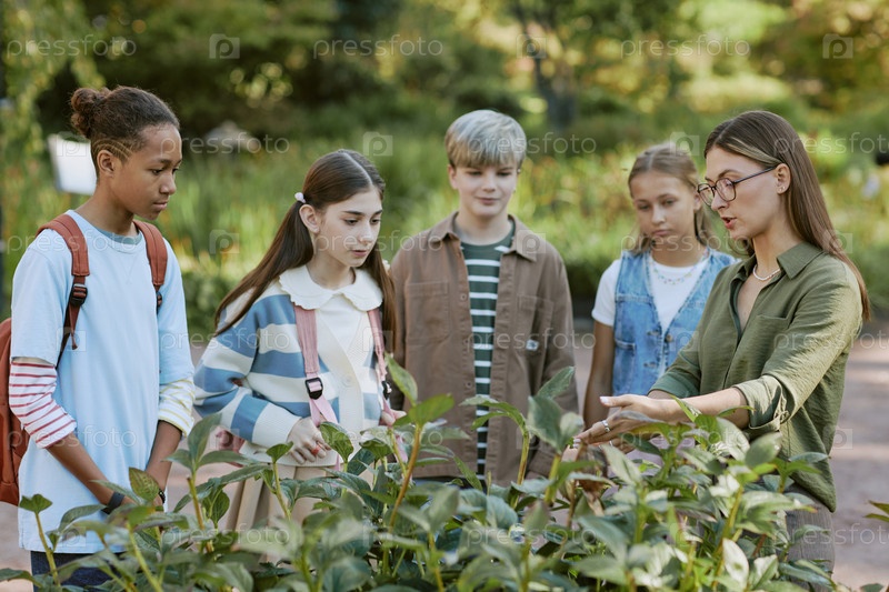 Молодая ботаник демонстрирует растения подросткам