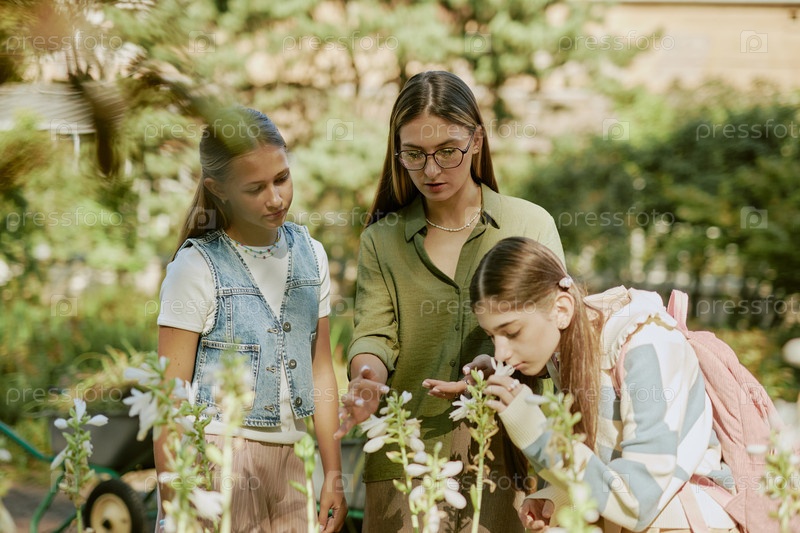 Ботаник показывает цветы девушкам