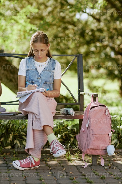 Ученица рисует в парке
