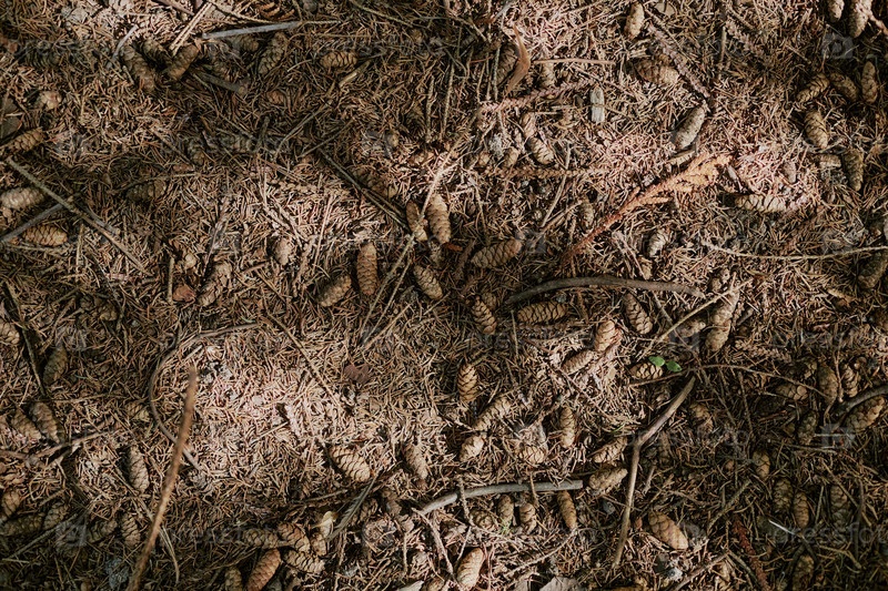 Сосновые конусы и иглы на земле
