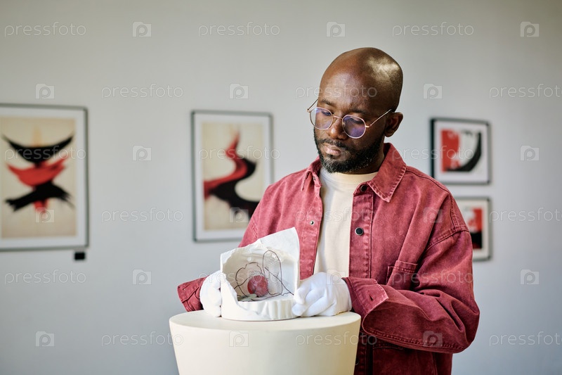 Инспектирование художественной скульптуры в галерее современного искусства