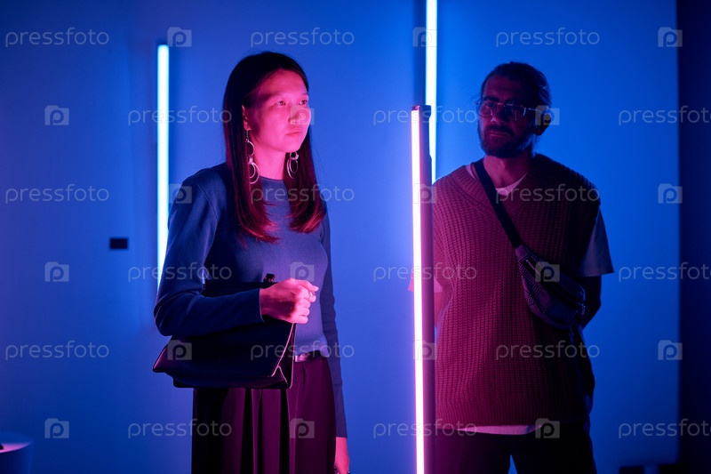 Портрет женщины, освещенной красочными неоновыми огнями