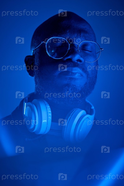 Медитирующий афроамериканский мужчина в синем свете