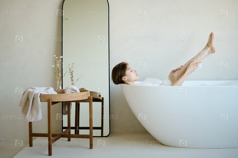 Молодая красивая женщина, нежно прикасающаяся к ноге