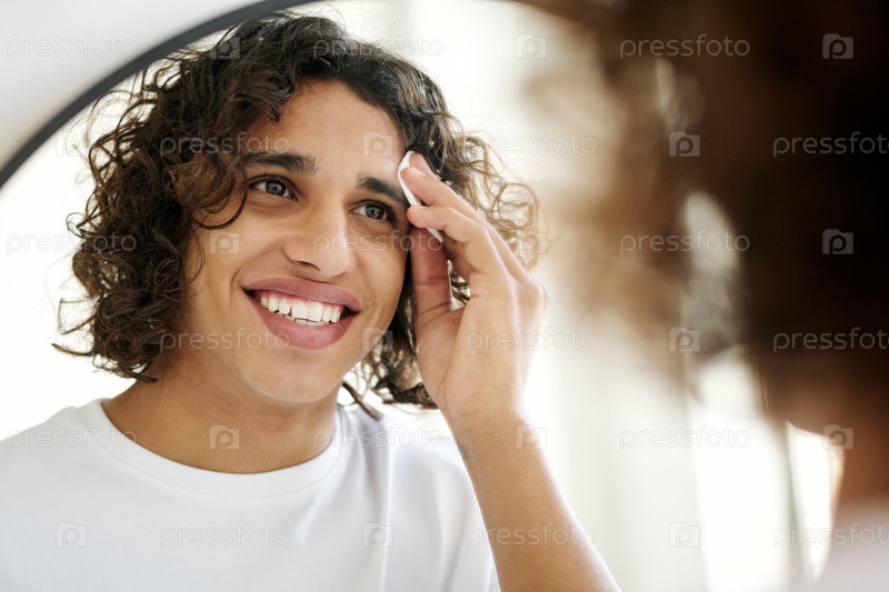 Улыбающийся молодой человек смотрит в зеркало