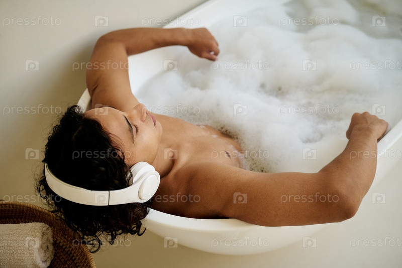 Молодой человек наслаждается музыкой и ванной