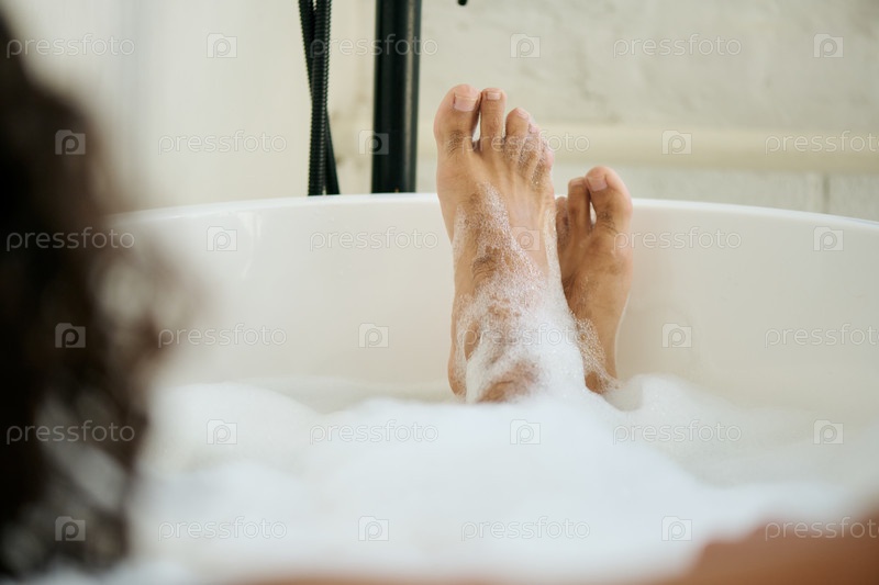 Непризнанный мужчина лежит в горячей ванне