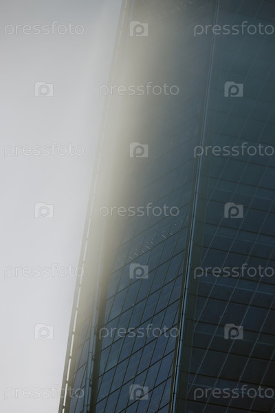 Современный небоскреб, проникающий сквозь плотный туман