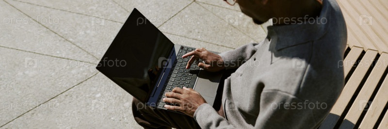 Работа на открытом воздухе на лаптопной скамейке в солнечный день