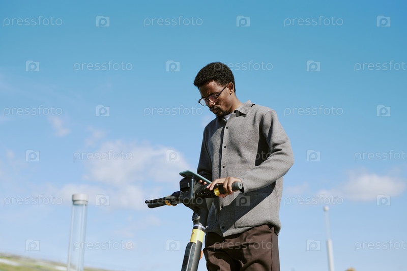 Поездка на скутере на открытом воздухе в формальной серой рубашке