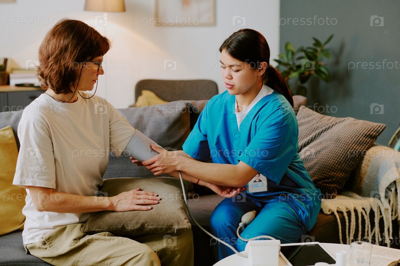 Проверка кровяного давления во время домашнего медицинского посещения