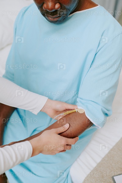 Медицинский работник, вставляющий ИВ в руку пациента на клинике