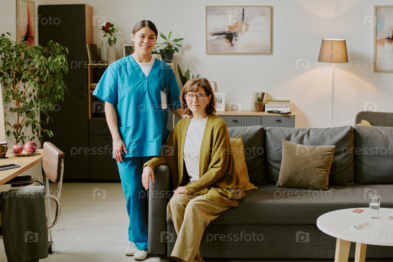 Портрет медсестры и пожилой женщины, сидящей в гостиной