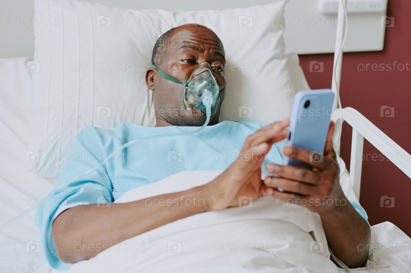 Афроамериканский пожилой мужчина, лежащий в больничной постели