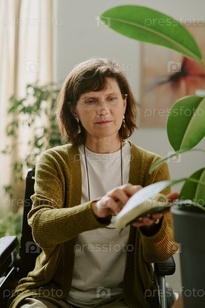 Пожилая женщина, использующая устройство в уютной домашней среде