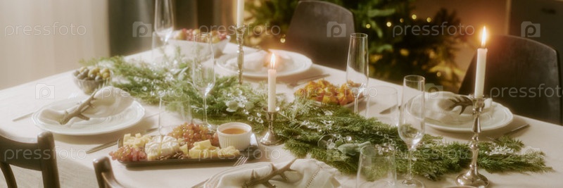Заголовок с зажженными свечами на столе