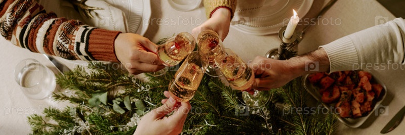 Заголовок с руками, держащими бокалы шампанского