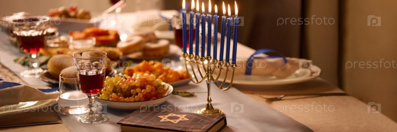 Заголовок с зажженными свечами и Торой